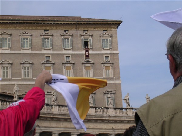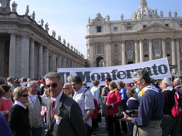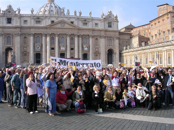 il tripudio dei fazzoletti bianchi e gialli dei 300 Monferrini, il 13 Novembre del 2005, al saluto di Sua Santita' Beledetto XVI,ai "pellegrini che venivano dalle ridenti colline del Monferrato".